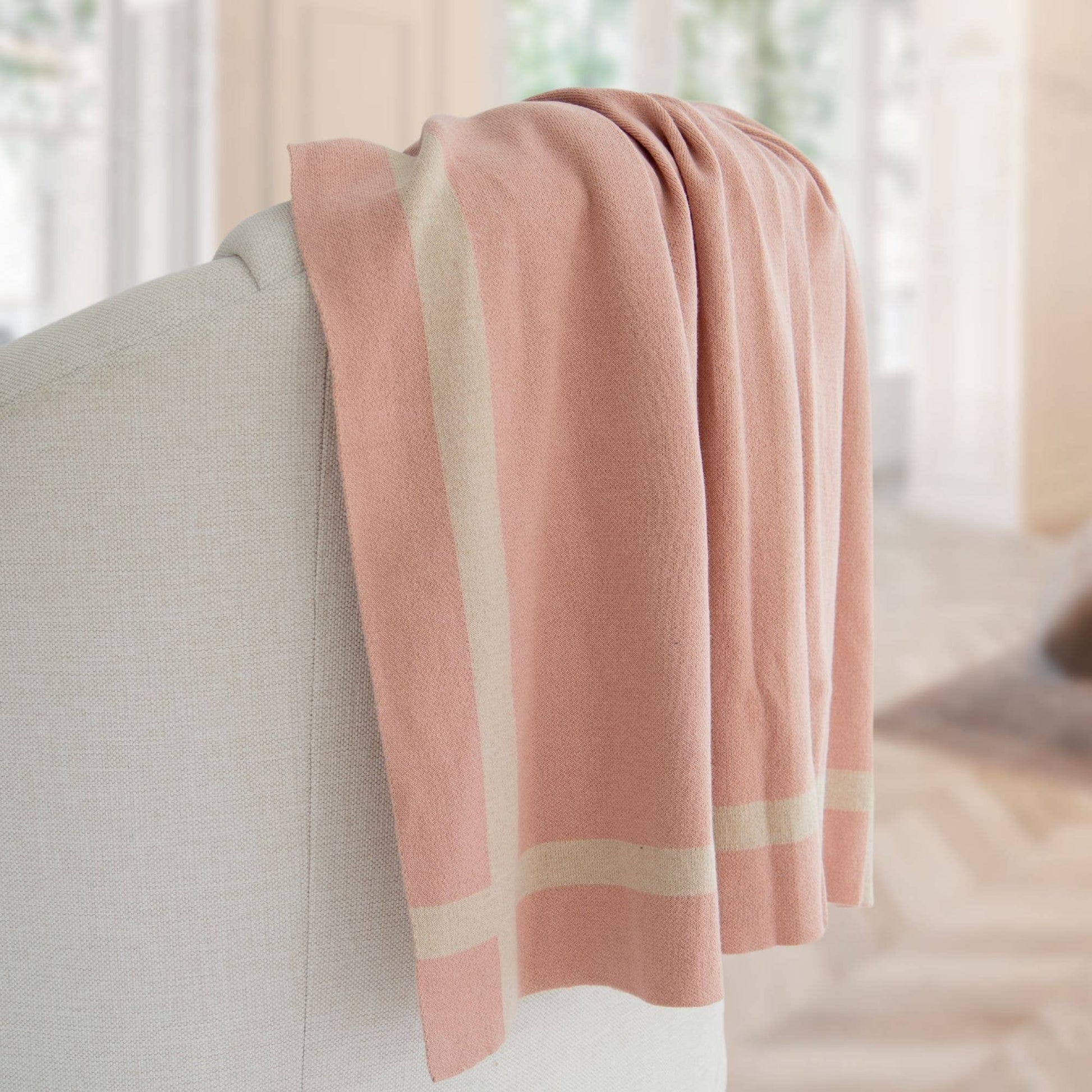 Luxurious Jouri Equestrian Stripe Cotton Knit Throw Blanket : Dusty Blush